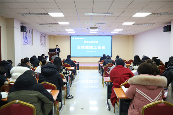 为全面做好新学期各项工作,统一思想,凝心聚力谱写学院高质量发展新篇章,2月29日,信息工程学院在明德讲堂召开新学期全体教职工会议。会议由党总支书记夏存国主持。