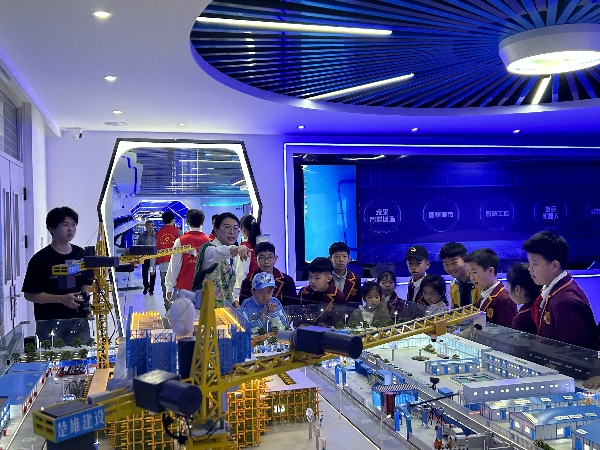 在建筑工程学院“小红枣”志愿服务队师生的带领下,实验小学的孩子们迎着清晨的阳光、迈着整齐的步伐走进建筑工程学院智能建造实训基地(枣庄市科普教育基地)。在科普教育基地,孩子们近距离观摩前沿智能建造设备与技术成果,依次体验智能化工地模拟场景、安全用电、消防演练等项目,以“看得见、摸得着”的互动形式,在触摸科技成果中激发探索兴趣,沉浸式体验了一场绿色、低碳的“科普盛宴”。