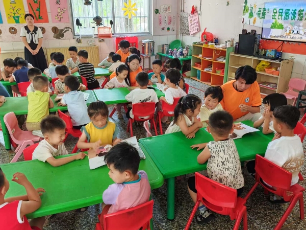 近日,建筑工程学院“阅·青春”全民阅读推广志愿服务团队走进滕州市新概念英语学校和济宁梁山县东姜幼儿园,开展“‘书’菜计划”主题阅读推广活动,为孩子们开启了一场沉浸式、趣味盎然的阅读探索之旅。