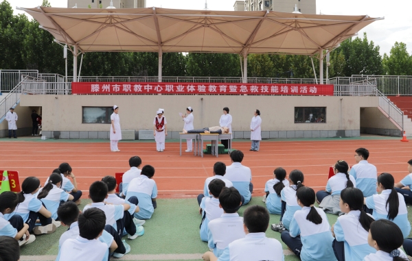 为普及急救知识,拓宽学生职业视野,9月24日,滕州市中等职业教育中心学校护理专业部师生团队走进滕州市北辛街道北辛中学通盛路校区,开展“职业教育体验进校园”活动。