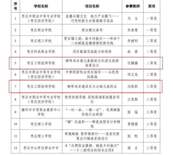 枣庄工程技师学院在第二届枣庄市黄炎培职业教育创新创业大赛中斩获佳绩