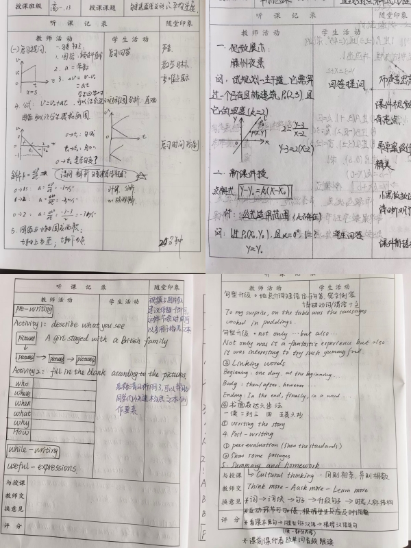 本次检查针对教案的教学环节设计、教学方法创新、教学活动安排、课后反思与作业设计等方面展开,旨在以查促改,以评促教,促进教师教学能力的整体提升。经检查,大部分教师教案详尽规范,教学目标明确,教学重难点突出,教学过程设计完整清晰;听课记录内容充实,展现出浓厚的教研氛围和严谨认真的教学态度。