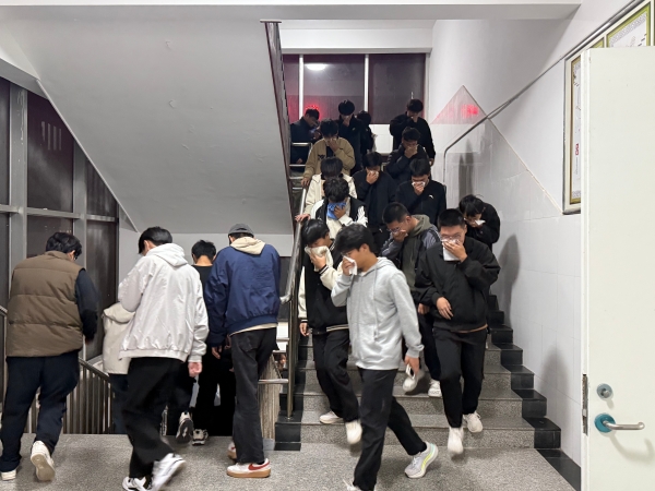 疏散演练先后在教学区、宿舍区依次展开。在教学区,5号教学楼和学术交流中心所有班级同时进行。随着一声哨音响起,全体学生在辅导员及楼层安全员的指引下,严格按照应急疏散规范,采取有效防护措施,沿预定疏散路线迅速、有序地撤离至指定安全区域。在宿舍区,男女生宿舍楼参与疏散演练人员严阵以待,在统一指挥下,同学们按照应急预案要求,顺利完成从宿舍楼到室外安全区域的全流程疏散,演练整个过程组织严密、响应迅速。