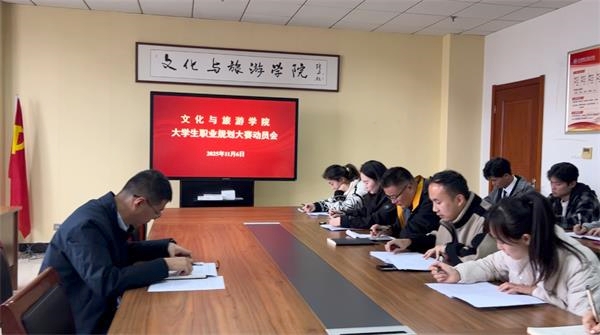 为提升学生职业规划能力,明确职业发展方向,积极备战枣庄科技职业学院学生职业规划大赛,11月6日下午,文化与旅游学院在715会议室召开学生职业规划大赛动员会。学院分管副院长徐鹏、学生科全体教师、兼职辅导员及学生代表参加会议。