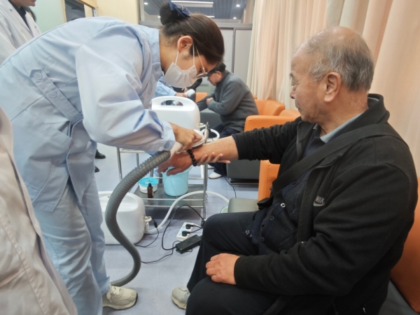 活动现场,青年师生志愿者充分发挥专业特长,在智慧康养实训中心为老干部们提供了基础健康监测、康复理疗指导与保健按摩等服务,并耐心解答各类健康咨询,用实际行动守护老同志们的健康,传递了学院的深切关怀与温暖。