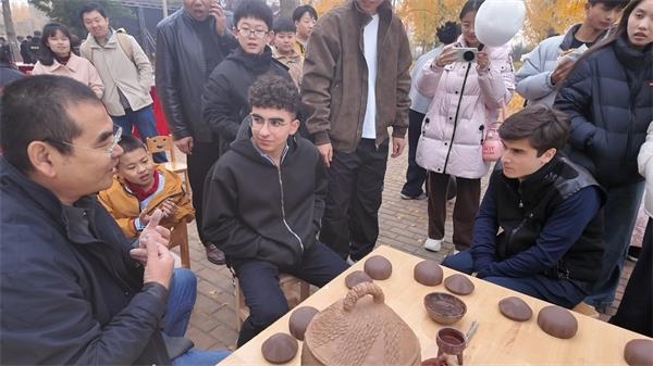 本次旅游节以“银杏映古韵 书香润官桥”为主题,生动呈现了历史文化与旅游经济融合发展的创新实践。现场精彩的文艺展演、精湛的非遗技艺展示和地道特色小吃,吸引了留学生浓厚兴趣,大家踊跃参与、纷纷点赞。在北辛土陶非遗体验区,留学生在非遗传承人与美术老师的指导下亲手制作土陶,深入感受传统手工艺的魅力。活动尾声,留学生参观了鲁班纪念馆,通过拆解组装鲁班锁,亲身体验榫卯结构的精巧,感悟“百工圣祖”鲁班的工匠精神。