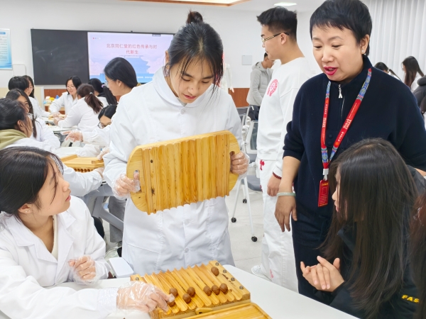 在沉浸式搓丸体验环节,同仁堂专家现场演示了传统搓丸技艺的关键步骤,并详细讲解了每一步的操作要点。同学们在专家与老师的指导下,亲手制作药丸,亲身体验了这一国家级非物质文化遗产的独特魅力。活动现场气氛热烈,互动频繁,同学们不仅掌握了搓丸的基本技能,还深刻体会到了中医药文化的博大精深。互动问答与成果点评环节进一步加深了同学们对中医药技艺与文化内涵的理解。通过与同仁堂专家的交流,大家对中医药行业的未来发展前景有了更加清晰的认识,也坚定了传承中医药瑰宝的信心。