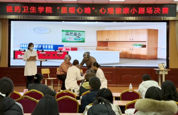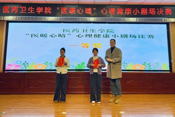 为深入贯彻高校心理健康教育工作要求,帮助2025级新生缓解心理困惑、适应大学生活,营造“互助互爱、积极向上”的健康成长氛围,12月30日下午,医药卫生学院“医暖心晴”心理健康小剧场决赛暨颁奖仪式在附楼多功能厅顺利举行。学校教务处(科技处)于淼、大学生心理健康服务中心孙雨及医药卫生学院韩晓璐博士担任本次比赛评委。学校学生工作处处长薛涛,医药卫生学院院长刘端海、党总支书记于莉带领班子成员及全体辅导员老师出席活动。