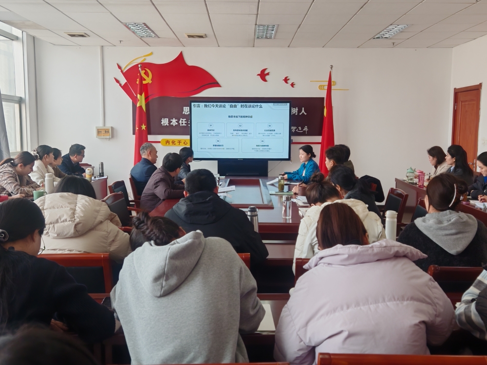 马克思主义学院教师郭启萌立足当代社会发展语境,以《1844年经济学哲学手稿》为基础,系统梳理了“异化劳动”的理论内涵及逻辑规律,通过剖析消费主义异化、数字异化、心理异化等新型异化形态的表现与成因,阐释了马克思“异化劳动”理论与中国特色社会主义“美好生活”理念的内在契合性,论证了“美好生活”的核心要义是人的自由全面发展。郭启萌结合思政教育的时代要求,从制度建构、文化引领、实践路径三个维度,指出了当代社会克服“劳动异化”的具体举措,为新时代推进人的自由全面发展、实现人民对美好生活的向往提供了理论参考,为老师们奉上了一堂精彩讲座。李燕、刘青两位教师结合宣讲内容和思政教学实际分别作了主题发言。