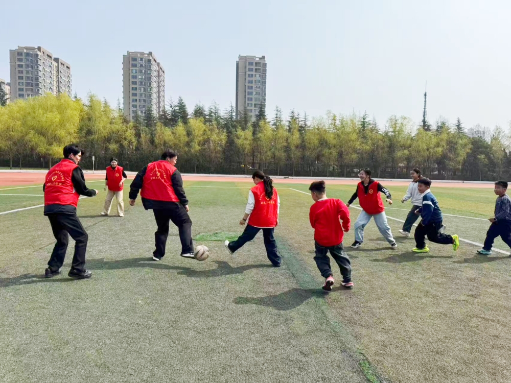 操场上,志愿者与孩子们开展了一场充满童趣的互动活动。大家分工协作组装风筝,携手奔跑放飞梦想,五彩的风筝在蓝天上翱翔,孩子们的欢声笑语回荡在校园的每个角落;两人三足、接力传球等趣味游戏,让孩子们在无忧无虑的玩耍中感受到陪伴的力量,这份纯粹的陪伴,正是“关爱他人、乐于助人”精神的直接体现。
