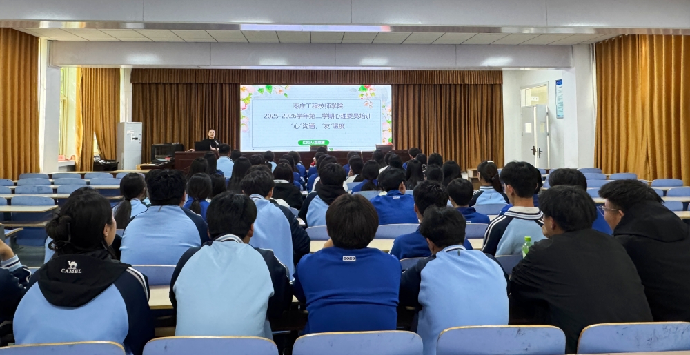 为贯彻落实学院“12345”德育工作体系,持续打造富有技工教育特色的德育工作品牌,强化学生心理委员队伍建设,4月14日,枣庄工程技师学院开展心理委员沟通技能专题培训。