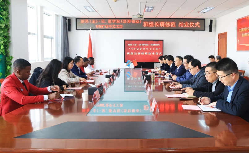 1月16日,学校举行刚果(金)- 班・墨学院(洛阳钼业)暨“TFM 矿业中文工坊”班组长研修班结业仪式。有色金属工业人才中心教育培训处处长助理郝梦真、洛阳钼业集团人力资源经理吴波,学院党委书记谢宝华,党委委...