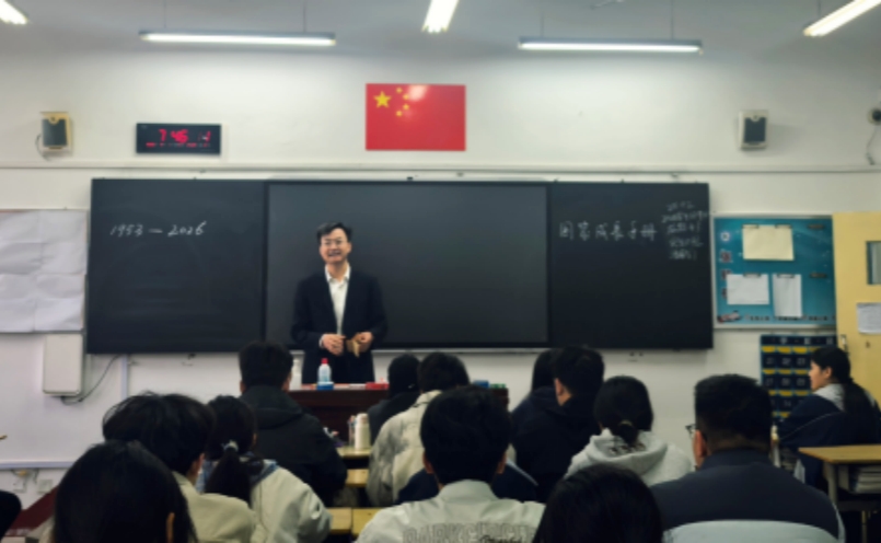 2026年4月9日,枣庄科技职业学院党委委员、副院长、工会主席刘陵东走进医药卫生学院2025级口腔医学技术二班,为学生讲授思政课,带领学子重温国家发展历程,厚植家国情怀。