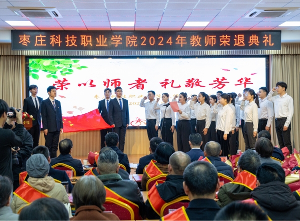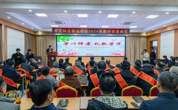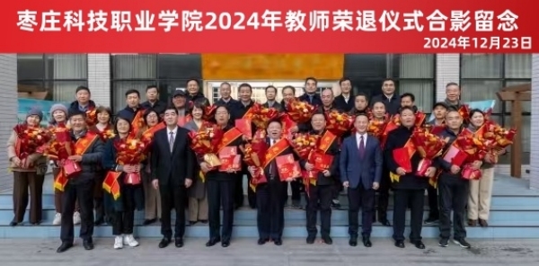 12月23日下午,枣庄科技职业学院在附楼多功能报告厅隆重举行2024年教师荣退典礼,以“荣以师者,礼敬芳华”为主题,向退休的教师们致以最崇高的敬意和祝福。学校党委领导班子成员,各处室负责人,各二级学院院长、党总支书记,枣庄工程技师学院、职教中心学校院(校)长、书记,2024年新入职的教师参加荣退典礼。典礼由党委副书记、院长闵祥寨主持。