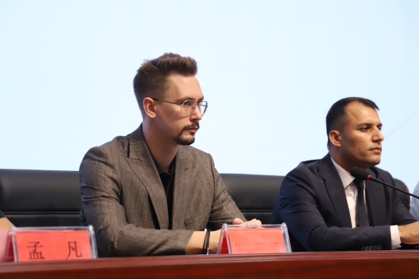 秋风送爽,丹桂飘香。为使新同学深入了解中外合作办学项目的特色与优势,尽快适应融入大学生活,学校招生就业处(国际合作与交流处)特别邀请学校特聘教授商岳先生、俄罗斯阿穆尔共青城国立大学别赫鲁兹教授、弗拉基米尔教授、叶卡捷琳娜教师及俄罗斯阿穆尔共青城国立大学驻华总代理孟凡先生于9月23日上午在学术交流中心为2025级中俄项目班学生举行别开生面的新生入学教育活动。学校党委委员、副院长张东睿,招生就业处(国际合作与交流处)处长吴洪波,机电工程学院和建筑工程学院25级中俄项目全体师生参与本次活动。会议由吴洪波主持。