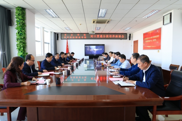 座谈会上,谢宝华对考察团的到来表示热烈欢迎,对枣庄学院长期以来的支持表示衷心感谢,并介绍了我校的办学历史、师资力量、专业布局及对口贯通分段培养工作取得的成效。高峰对我校的热情接待表示感谢,并分享了枣庄学院在应用型人才培养、学科建设与地方产业需求对接方面的经验,强调了两校深化合作对提升贯通培养质量的重要意义。刘陵东详细介绍了我校贯通培养工作的整体情况,学校有关教学部门负责人分别汇报了相关专业贯通培养的具体实施情况。在交流座谈环节,两校围绕贯通培养方案优化、师资交流合作、技术应用创新等展开了深入探讨。
