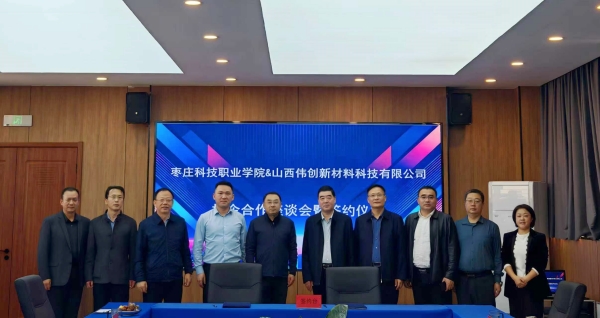 2025年11月2日,枣庄科技职业学院党委副书记、院长闵祥寨率队,党委委员、副院长赵卫平,党委委员、组织人事部部长秦峰,贾佳、胡宝娟陪同,赴山西省晋城市泽州县山西伟创新材料科技有限公司考察交流,并与该企业签订校企合作协议。泽州县副县长赵毅鹏、相关科局负责同志、山西伟创总经理杨潇翔出席活动,其中杨潇翔为我校离岗创业的优秀教师代表。此次签约标志着三方在产教融合、协同育人领域的合作正式启动。