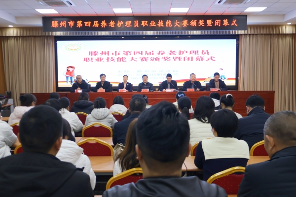 2025年12月13日,滕州市第四届养老护理员职业技能大赛在枣庄科技职业学院隆重举行。滕州市政府副市长徐方坤,枣庄科技职业学院党委副书记、院长闵祥寨,滕州市委组织部副部长、人社局党组书记、局长张美林,滕州市民政局党组书记、局长翟华栋,枣庄科技职业学院党委委员、副院长、工会主席刘陵东,市民政局副局长王有成,枣庄科技职业学院医药卫生学院院长刘端海等出席大赛颁奖仪式暨闭幕式。