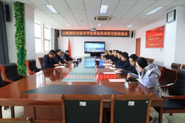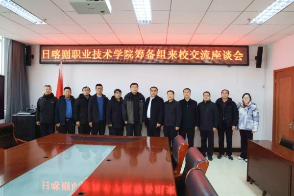 1月26日,日喀则职业技术学院党委委员、筹备组副组长王伟、建筑工程与新能源技术教学部主任苏强、现代物流与交通管理教学部主任李付君一行来校考察交流。我校党委委员、组织人事部部长秦峰,党政办公室、实验实训中心、机电工程学院、建筑工程学院主要负责人,相关专业负责人及我校援建日喀则职业技术学院教师狄兰永参加了活动。