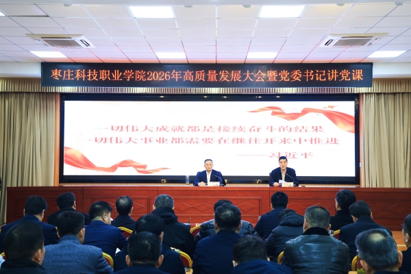 3月2日,春节后上班第一天,学校在附楼多功能厅举行2026年高质量发展大会暨党委书记讲党课活动,深入学习贯彻党的二十届四中全会精神,全面落实全国全省教育工作会议决策部署,迅速落实全省和枣庄滕州“新春第一会”安排部署,总结2025年工作成效,分析当前发展形势,部署“十五五”和2026年重点任务,锚定目标、理清思路、整装出发,在新的一年里,展现更大担当、成就更大作为、实现更大发展。