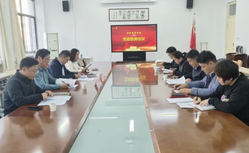 10月21日下午,财经商贸学院在5304会议室召开党政联席会议。学校党委委员、副院长张东睿,继续教育学院党总支书记、学校党政办副主任张军浩到会指导,学院班子成员参会,院长李军主持会议。